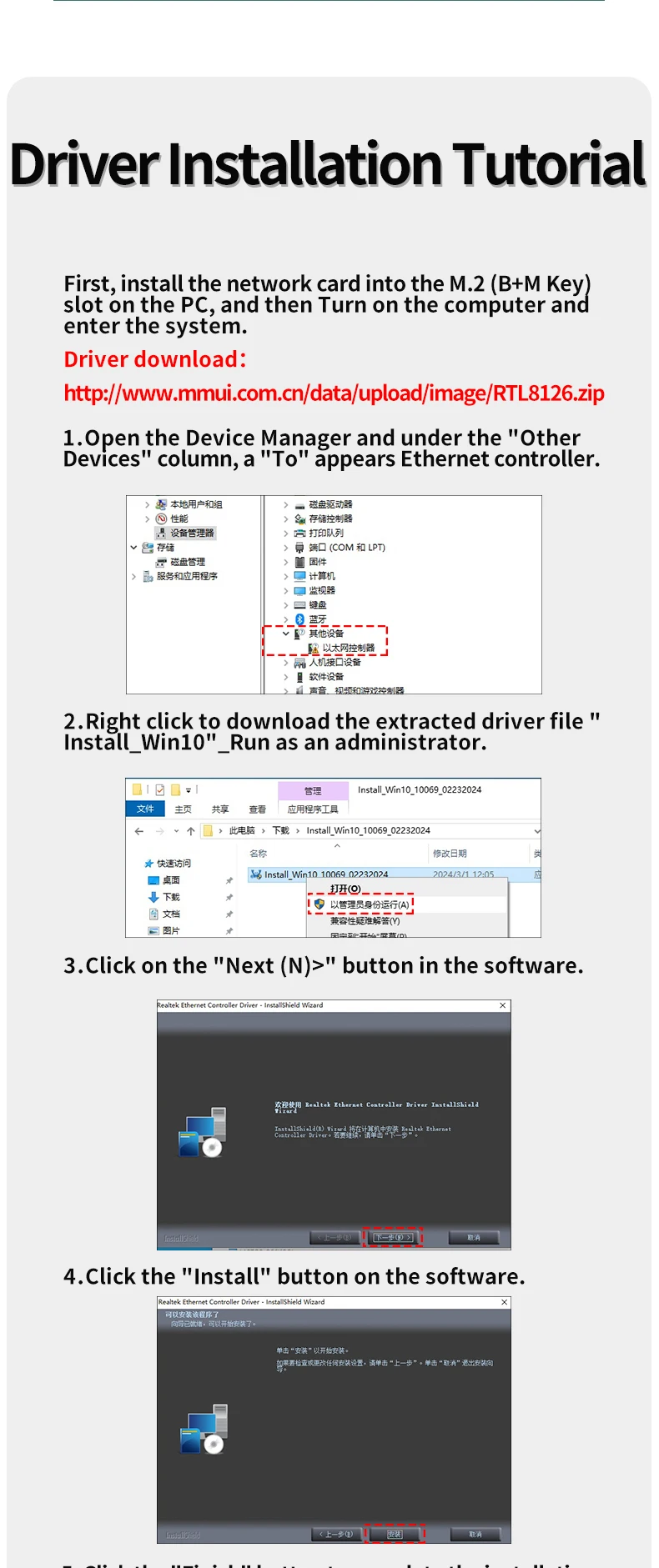 Note: If your onboard network card is also from Realtek, it will prompt you to uninstall the original network card driver, which may cause the network to disconnect.